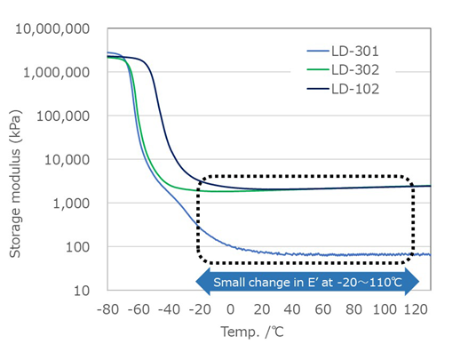 LD-302 features a low Tg and high modulus, maintaining high elasticity across a wide temperature range.